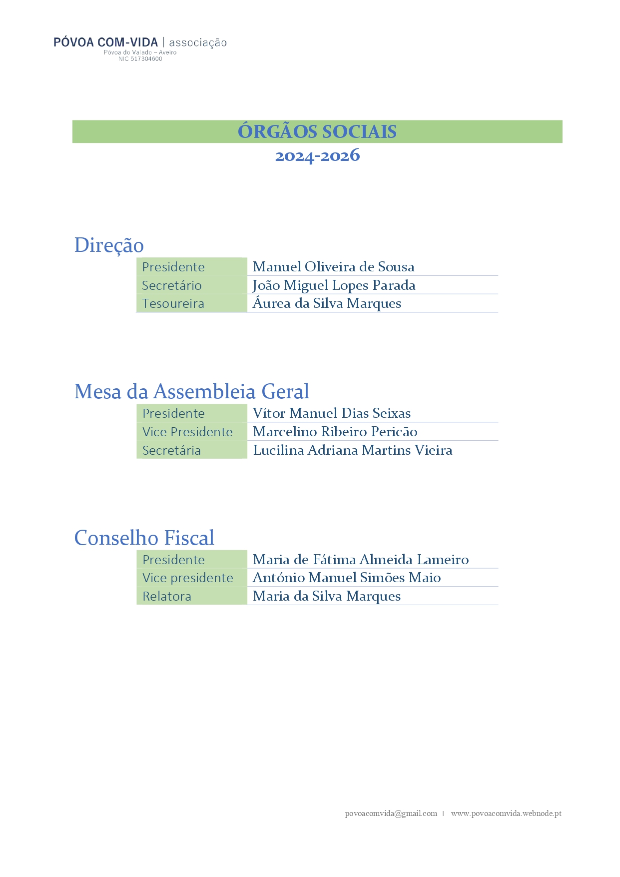 em nome de todos os que se identificam com as finalidades e competências da Póvoa Com-Vida